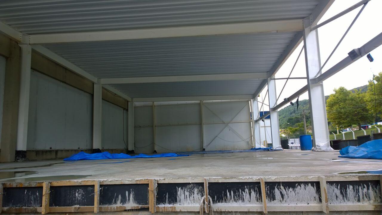 Instalação de cobertura com telhas metálicas autoportantes pré-pintadas.